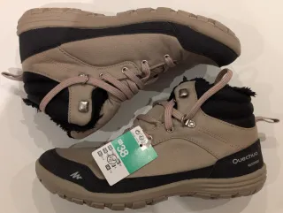 Botas de nieve Quechua de color beige y negro, talla 38. Perfectas para mantener los pies calientes y secos. Totalmente nuevas y sin estrenar. Con su etiqueta y la suela impoluta. - Diseño impermeable. - Forro interior cálido.