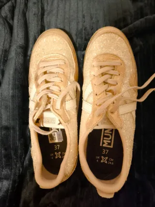 Zapatillas Munich para niña con un diseño brillante y llamativo. - Exterior con lentejuelas. - Cierre con cordones. - Detalle de las icónicas rayas de Munich.