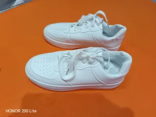 Zapatillas de lona rojas con detalles blancos. - Puntas anchas - Cierre con cordones blancos. - Suela de goma blanca. - Detalle de etiqueta KUANGJUN en el lateral.