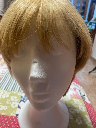 Cabeza de maniquí para prácticas de peluquería con cabello largo y rubio. Ideal para aprender y experimentar con diferentes peinados y técnicas. - Cabello largo y ondulado. - Color rubio natural. - Base estable para sujeción.