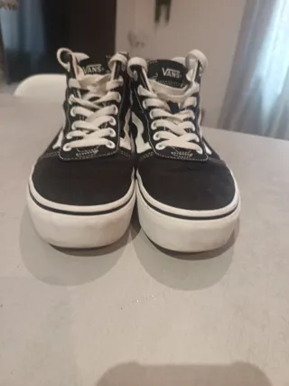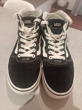 Zapatillas de caña alta de la marca Vans. - Color negro con detalles blancos. - Cierre con cordones.