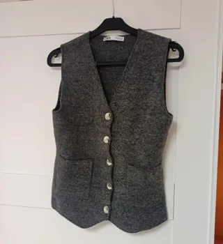 Chaleco de punto fino con botones. - Cuello en V. - Dos bolsillos delanteros. - Cierre de botones.