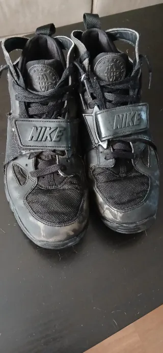 Zapatillas deportivas Nike en color negro. Para vestir sport, informal. Necesitan un limpiado con crema de piel para rozaduras. - Cierre con cordones. - Correa de velcro con logo. - Diseño deportivo.
