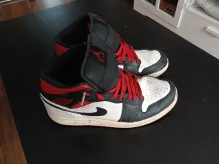 Zapatillas deportivas Nike Air Jordan 1. Les falta una limpieza con crema para piel. - Diseño de caña alta. - Cordones rojos. - Combinación de colores negro y blanco.