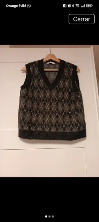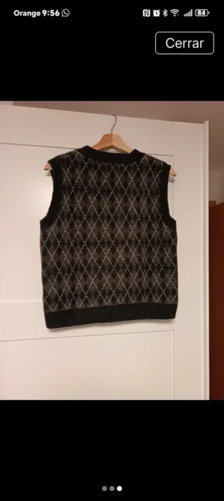 Chaleco de punto con estampado de rombos. - Diseño sin mangas. - Cuello en pico.
