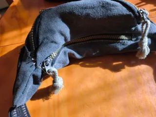 Riñonera de loneta en color negro, con un diseño moderno y práctico. - Cierre principal con cremallera. - Bolsillo frontal con cremallera. - Correa ajustable con cierre de clip. - Detalle de cordón en las cremalleras.