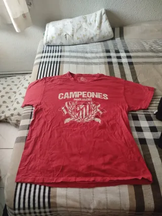 Camiseta de Campeones del Frente Atlético. Un diseño llamativo para los aficionados. - Estampado frontal con el escudo y lema. - Tejido cómodo para el día a día. - Talla L.