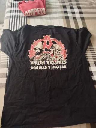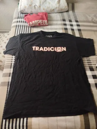 Camiseta negra con estampado frontal. - Diseño Tradicion con escudo. - Cuello redondo.