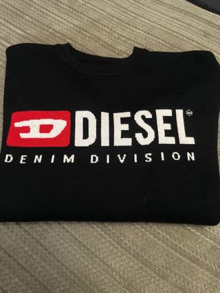 Jersey de punto negro Presenta el logo de la marca en la parte frontal. Me lo regalaron estas navidades no tiene ningun tipo de etiqueta y no me vale - Diseño con logo DIESEL DENIM DIVISION en blanco y rojo. - Cuello redondo.