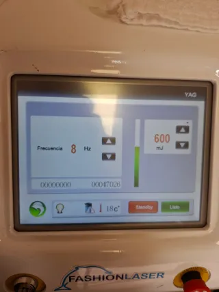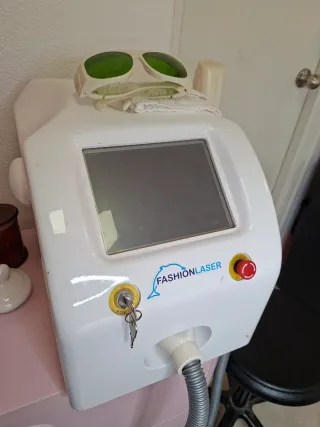 Máquina ND YAG para eliminación de tatuajes. La máquina presenta un fallo en el depósito del agua, de ahí el precio. Supongo que solo habría que purgarla, pero como no lo sé, la dejo tan barata por si necesita reparación, q no lo creo. Tiene pocos pulsos y da muy buenos resultados. Trae tres filtros diferentes para distintos tratamientos. - Modelo: Fashionlaser - Color: Blanco