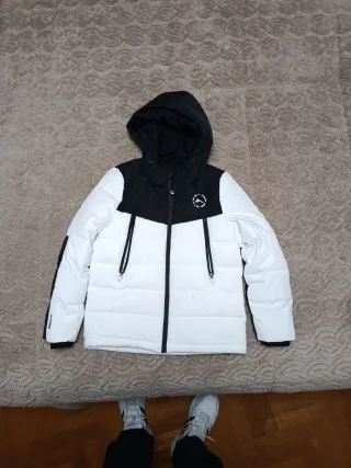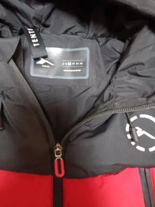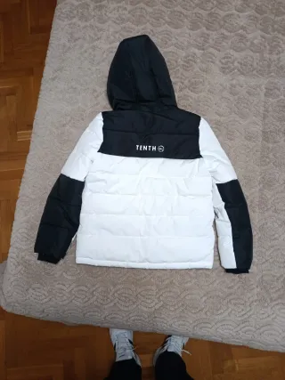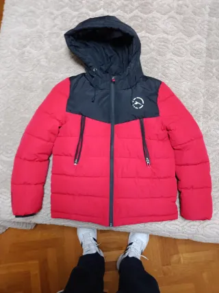Abrigo infantil con diseño moderno y capucha. - Cierre frontal con cremallera. - Bolsillos laterales con cremallera. - Detalle de logo en el pecho. - Mangas con detalles en contraste. - Talla 10 años
