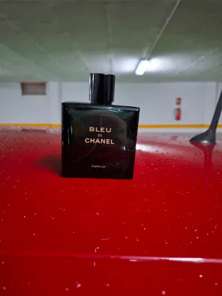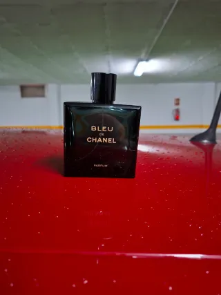 Bote vacío de perfume Bleu de Chanel. - Modelo Parfum. - Botella de cristal negro.