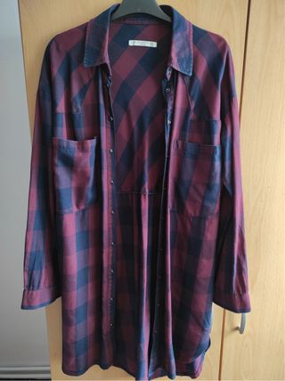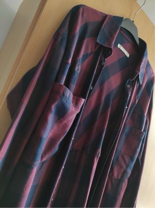 Camisa larga/sobrecamisa oversize con cuadros en color granate y azul marino de manga larga, con bolsillos delanteros. Cierre mediante botones presión. #camisa #camisamujer #camisamujercuadros #camisacuadros #sobrecamisa #sobrecamisacuadros #sobrecamisacuadrosmujer #cuadros #cuadrosazulmarinoygranate #pull #pullandbear