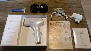 Depiladora láser para uso doméstico, completamente nueva y en su caja original. - Incluye gafas de protección. - Incluye cargador. - Incluye manual de usuario y guía rápida.