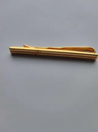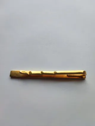 Elegante pasador de corbata con un diseño clásico. - Acabado en tono dorado (no oro) - Detalle de finas líneas grabadas a lo largo de la pieza. - En buen estado sin señales evidentes de roturas. Descuento por compra de más productos.