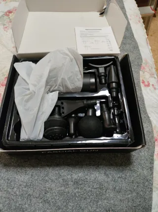 Pistola de masaje facial en color negro. Incluye varios cabezales para diferentes usos. - Diseño ergonómico. - Incluye manual de instrucciones.