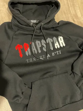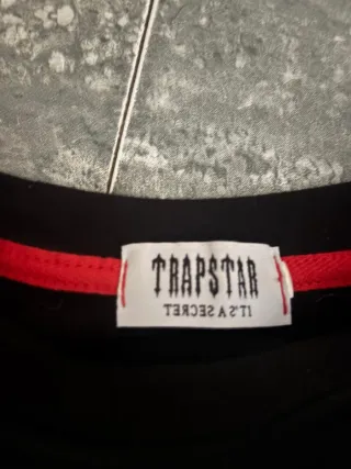 Sudadera negra con detalles en rojo de la marca Trapstar. Presenta un diseño moderno y llamativo. - Logo de la marca en la parte frontal. - Cuello redondo. - Manga larga.