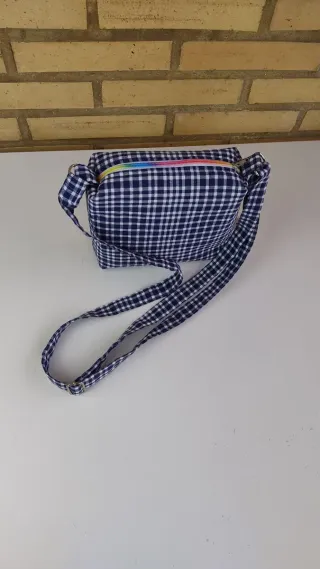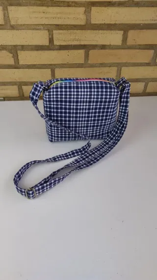 Bolso fallero artesanal con un diseño a cuadros. Hecho por encargo - Cierre de cremallera. - Correa ajustable.