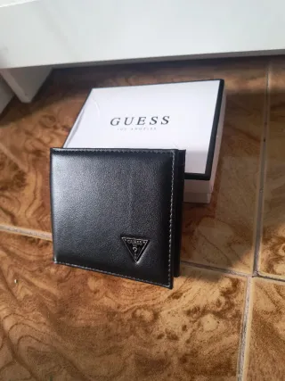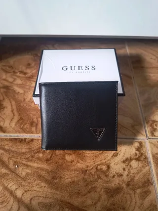 Elegante cartera Guess en color negro. Un accesorio clásico y funcional. - Diseño plegable. - Detalle de logo metálico en forma de triángulo.