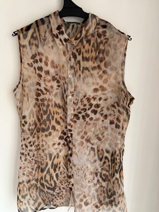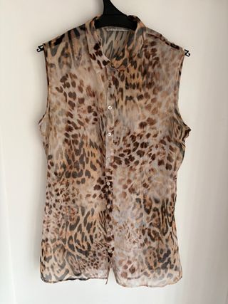 Blusa sin mangas con estampado de leopardo. - Diseño transparente. - Cuello camisero. - Cierre de botones.