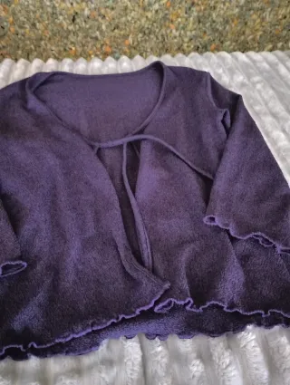 Rebeca de punto en color morado. - Tejido suave y agradable. - Diseño abierto.