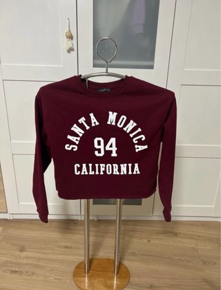 Sudadera de manga larga con estampado. - Diseño Santa Monica 94 California en blanco. - Cuello redondo. - Corte cropped.