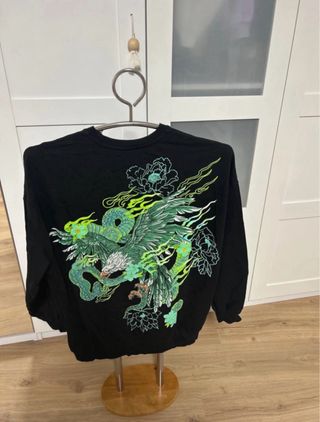 Sudadera de Bershka con un diseño llamativo. - Color negro con estampado de serpiente en verde. - Manga larga.