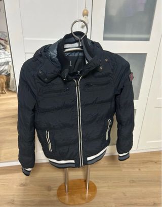 Chaqueta acolchada con capucha, perfecta para el frío. - Cierre de cremallera frontal. - Dos bolsillos laterales con cremallera.