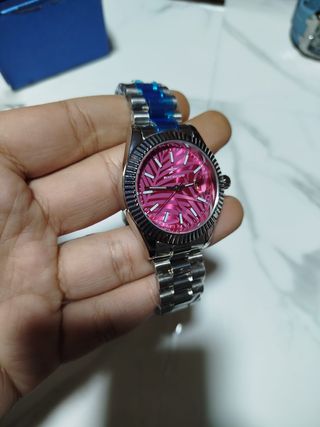📍 Estado: Nuevo a estrenar (10/10) 💰 10 € ✨ Caja en acero inoxidable sólido ✨ Correa presidente con cierre oculto, elegante y sensacion de infinita ✨ Esfera fucsia tropical 🌺 con calendario funcional a las 3 🗓️ ✨ Movimiento de cuarzo japonés SL28 (pila nueva, duración 2 años) ✨ Resistencia al agua: 30 m ✨ Incluye caja negra premium 🎁 + herramienta de ajuste 🙌 Si nos dices tu medida de muñeca, ¡te lo enviamos ya ajustado! Fotos reales 📸 🚀 Un reloj atrevido, colorido y con estilo único por solo 10 € #RelojHombre #RelojFucsia #TropicalStyle #Reloj40mm #AceroInoxidable #Jubilee #RelojUnico