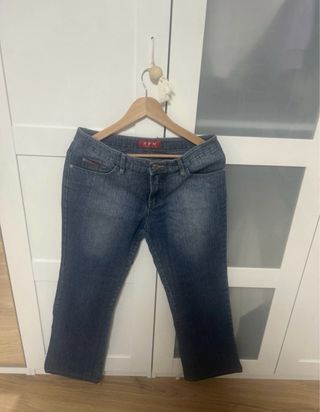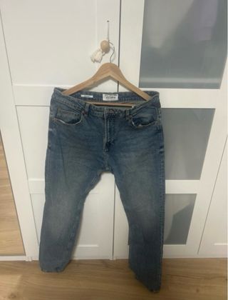 Vaqueros de corte recto de la marca Zara. - Talla 36 (S). - Color azul claro. - Diseño clásico con cinco bolsillos. - Cierre de cremallera y botón.