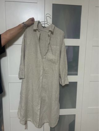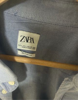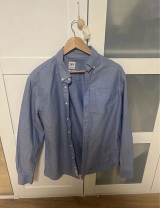 Camisa de manga larga de la marca Zara. - Cuello tipo button-down. - Cierre de botones. - Bolsillo en el pecho.