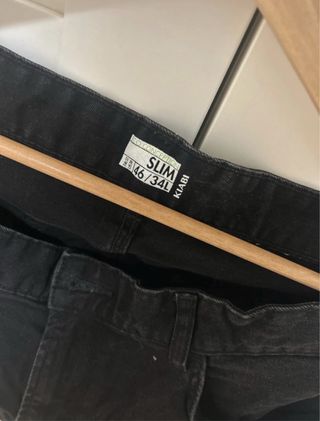 Pantalón corto vaquero de color negro. - Corte slim. - Cintura con trabillas para cinturón. - Bolsillos delanteros y traseros.