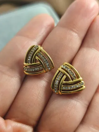 Elegantes pendientes con un diseño entrelazado y detalles brillantes. - Chapado en oro de 18 quilates. - Adornados con pequeñas incrustaciones.