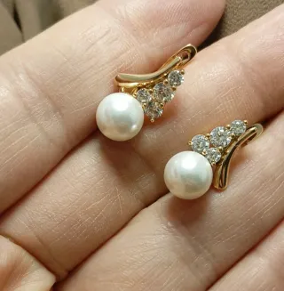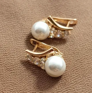 Elegantes pendientes chapados en oro con un diseño delicado. - Detalle de perlas blancas. - Acompañados de circonitas brillantes. - Cierre seguro y cómodo.