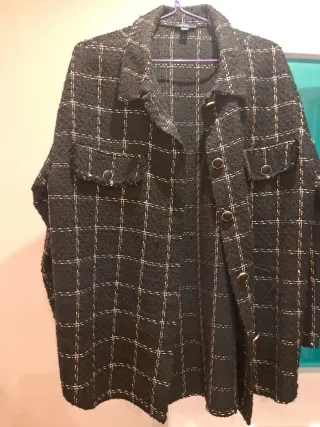 Chaqueta de cuadros con un diseño moderno y elegante. - Tejido tweed texturizado. - Detalles en hilo dorado. - Cierre de botones. - Bolsillos frontales con solapa.