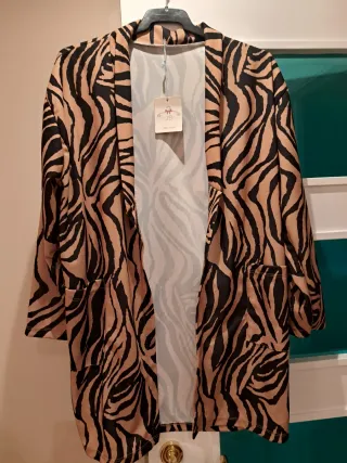 Elegante blazer con un llamativo estampado de cebra. - Diseño abierto. - Bolsillos frontales. - Manga larga.