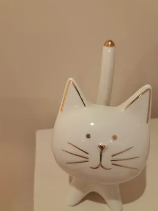 Este anillero con forma de gato es un accesorio encantador para tu tocador o mesita de noche. Su diseño combina un acabado blanco brillante con delicados detalles en dorado. - Forma de gato. - Detalles en dorado.