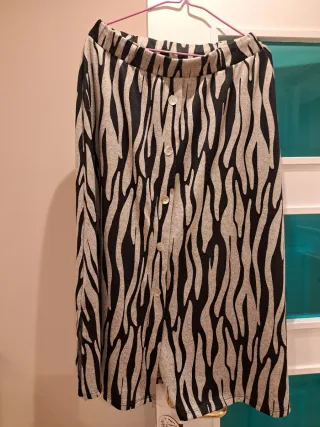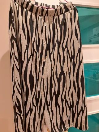 Falda larga con un llamativo estampado de cebra. Es cómoda y versátil. - Diseño con botones frontales. - Cintura elástica para un mejor ajuste.