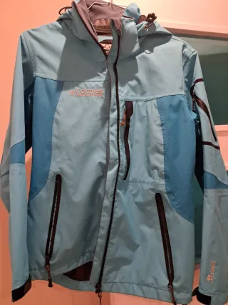 Parka unisex de la marca Columbia, ideal para actividades al aire libre. Su diseño combina tonos azules y turquesas. - Capucha ajustable. - Cremalleras en los bolsillos. - Puños ajustables. - Tecnología GORE-TEX. Precio en tienda 70 euros.