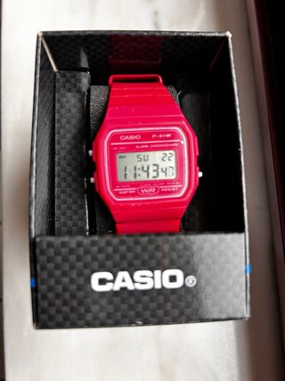 Reloj Casio modelo F-91W en color rosa. Un clásico de Casio. - Correa de resina. - Resistente al agua (WR). - Función de alarma y cronógrafo.
