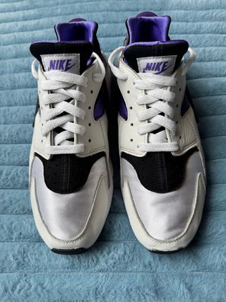 Zapatillas deportivas Nike Air Huarache. - Diseño con detalles en morado y blanco. - Cierre con cordones blancos.