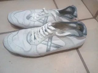Zapatillas deportivas de estilo casual con un diseño llamativo. - Exterior blanco con detalles en ante. - Estrella roja en el lateral. - Talón con detalle azul. - Cordones blancos.