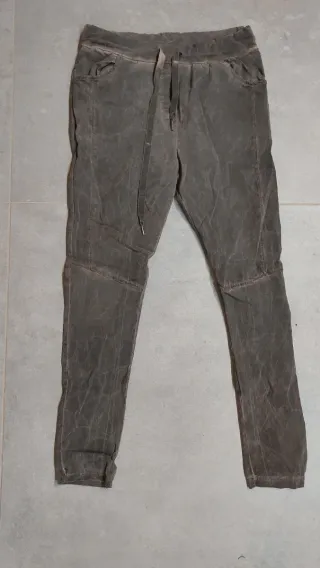 Pantalón elàstico de vestir en tono gris. Presenta un diseño moderno y versátil. - Cintura con trabillas para cinturón. - Cierre de cremallera y botón. - Bolsillos laterales.