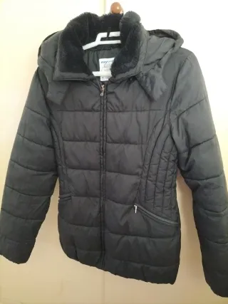 Chaqueta acolchada con capucha para niña. - Cierre de cremallera. - Detalle de pelo en el cuello. - Bolsillos frontales con cremallera.