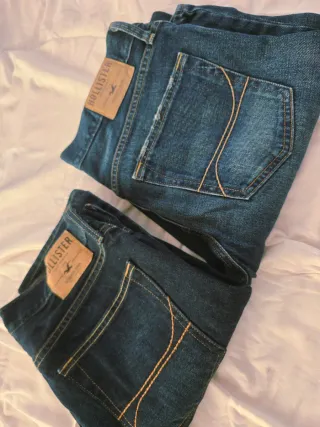 Lote de dos pantalones vaqueros de la marca Hollister. Talla,32/32 - Color azul. - Diseño clásico con etiqueta de la marca. Nunca se han usados.