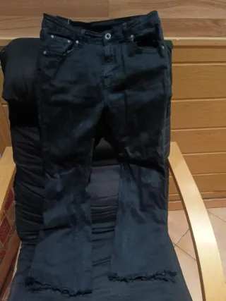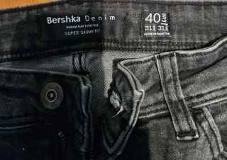 Pantalones vaqueros Bershka de corte Super Skinny Fit. - Color negro. - Talla 40 EUR / 31 MEX / 31 USA. - Fabricados en Pakistán.