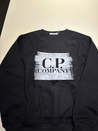 Sudadera negra de C.P. Company con un llamativo estampado frontal. - Cuello redondo. - Manga larga. - Estampado gráfico en blanco.