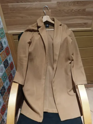 Chaqueta larga de punto fino, ideal para un estilo casual. - Diseño de corte recto. - Cuello tipo solapa. - Manga larga.