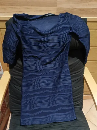 Vestido azul marino con un diseño texturizado único. - Tejido con relieve ondulado. - Manga corta. - Corte ajustado.