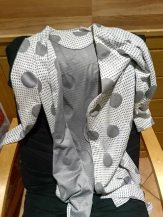 Albornoz ligero con un diseño de lunares y un estampado de pequeños puntos. - Diseño de lunares grandes. - Estampado de pequeños puntos en el fondo.